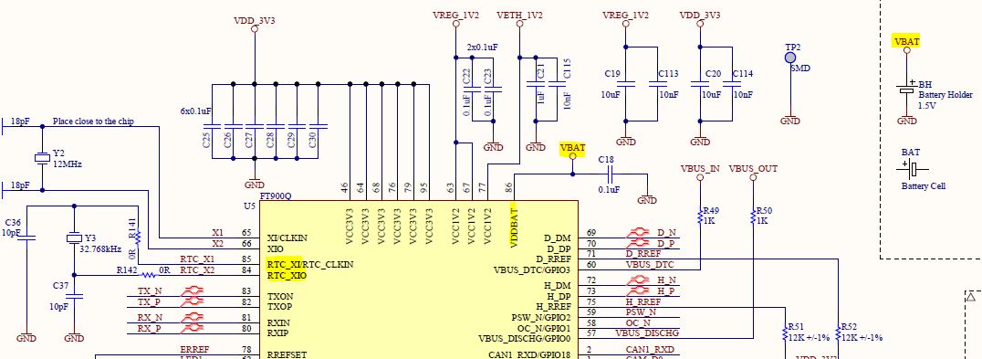 If we want to seriously use the FT90x also as RTC can you offer the details to design the VBAT circuit? or do you advise me to continue using an external RTC?